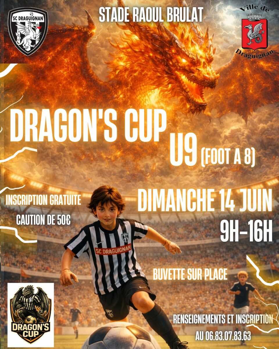 Le dimanche 14 juin, le Stade Raoul Brulat accueillera la Dragonâs Cup U9 (Foot Ă 8) pour une journĂ©e intense et passionnante !